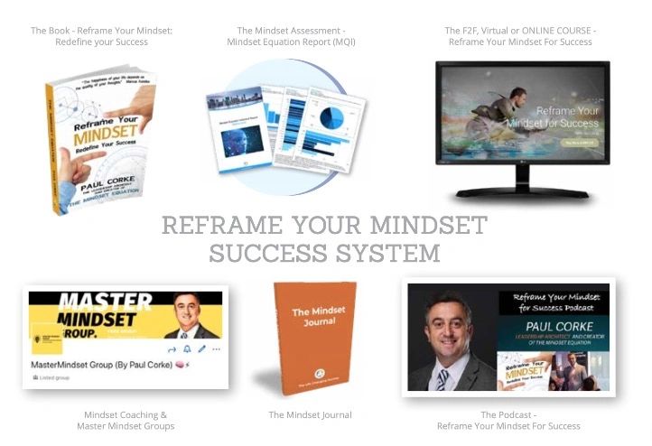 This system is based on my recent book ‘Reframe Your Mindset: Redefine Your Success’ where after 30 years research into happiness, mindset and what makes people successful I have defined the Mindset Equation for Success.